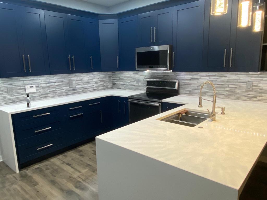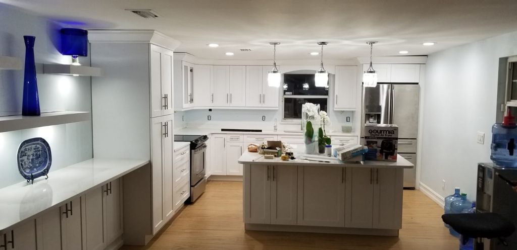 A full kitchen remodel includes demolition, new cabinet installation, countertop fabrication and installation, backsplash, painting, flooring, basic plumbing updates, and hardware. We handle everything from start to finish, including permits when required and complete cleanup.
